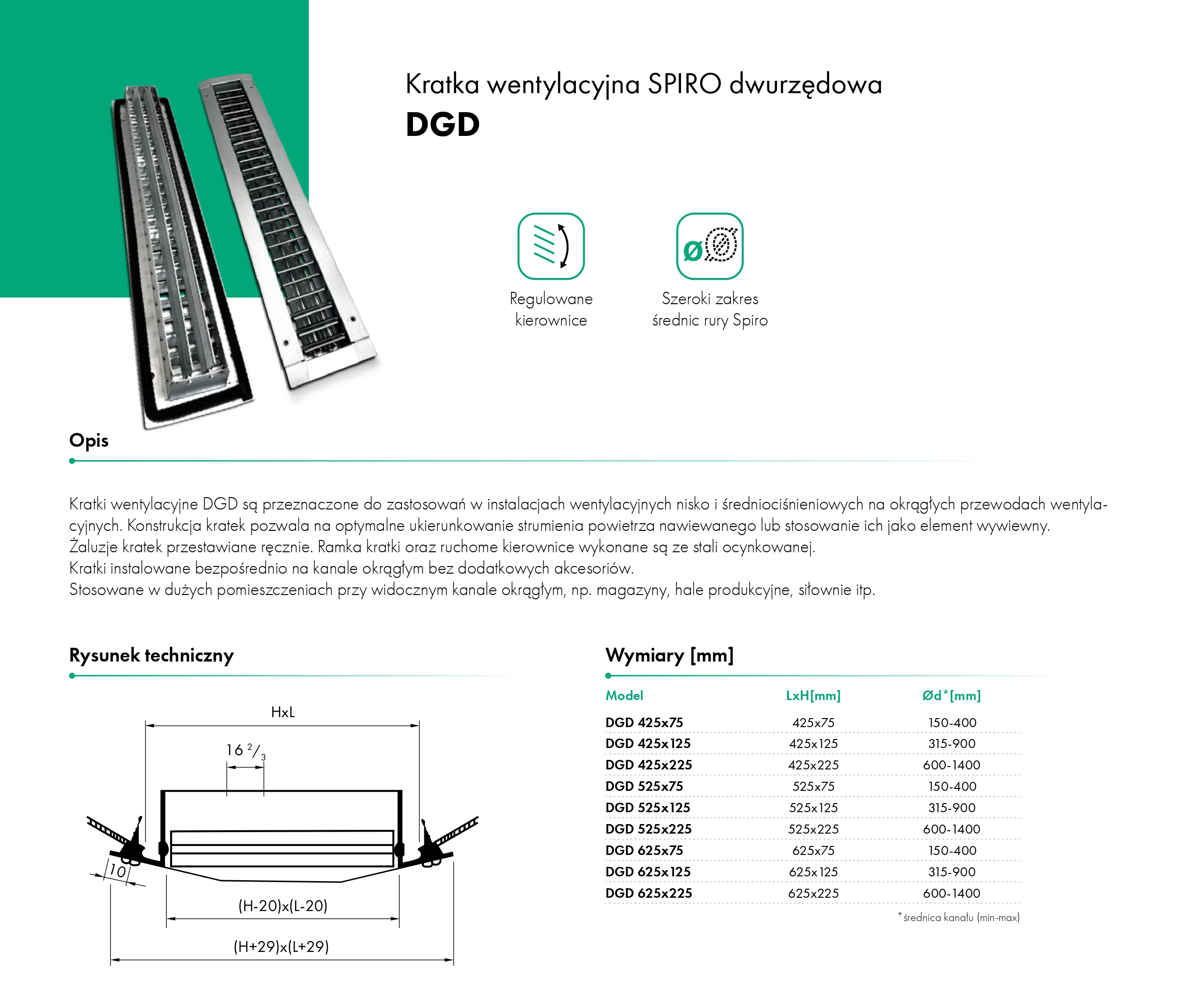 Kratki wentylacyjne DGD są przeznaczone do zastosowań w instalacjach wentylacyjnych nisko i średniociśnieniowych na okrągłych przewodach wentylacyjnych.
