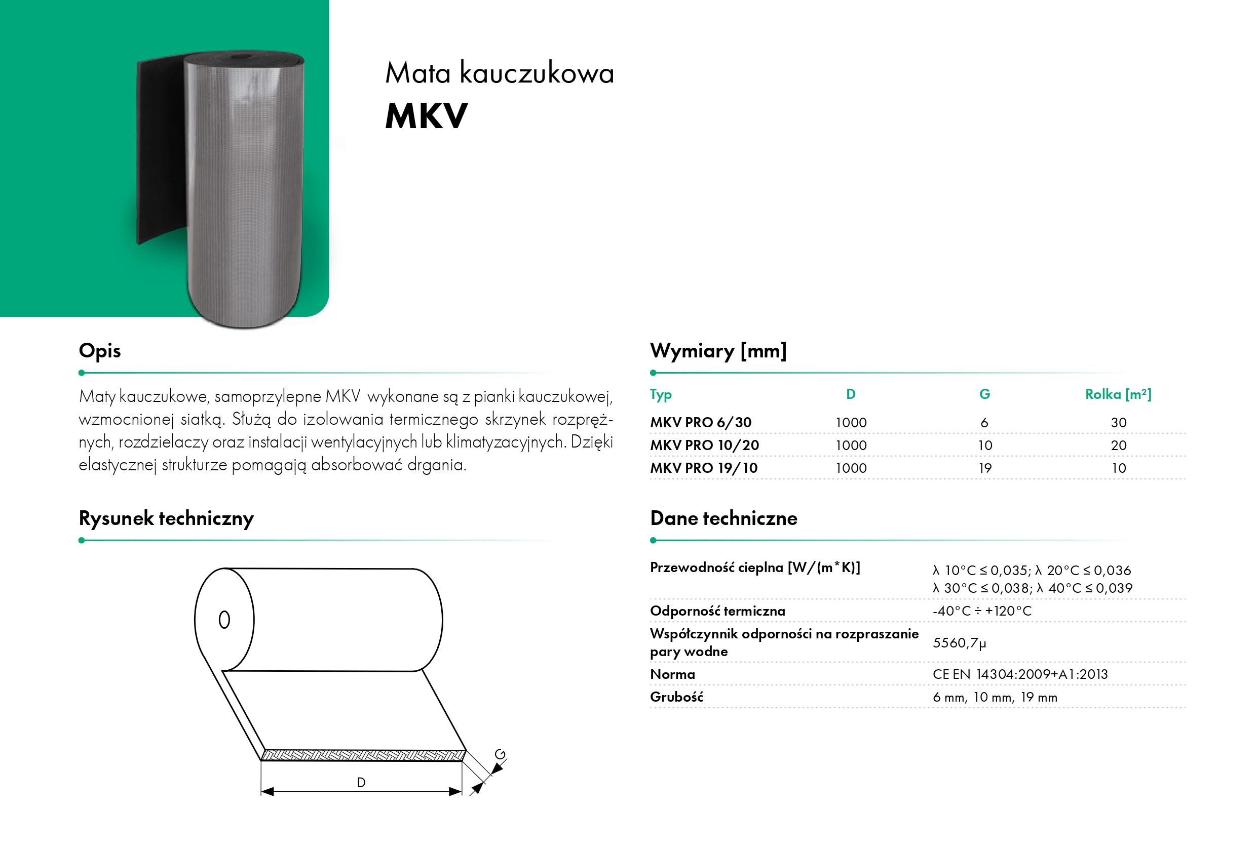 - MKV PRO 6/30 – szerokość rolki 1m, grubość maty 6mm, 30m2 w rolce