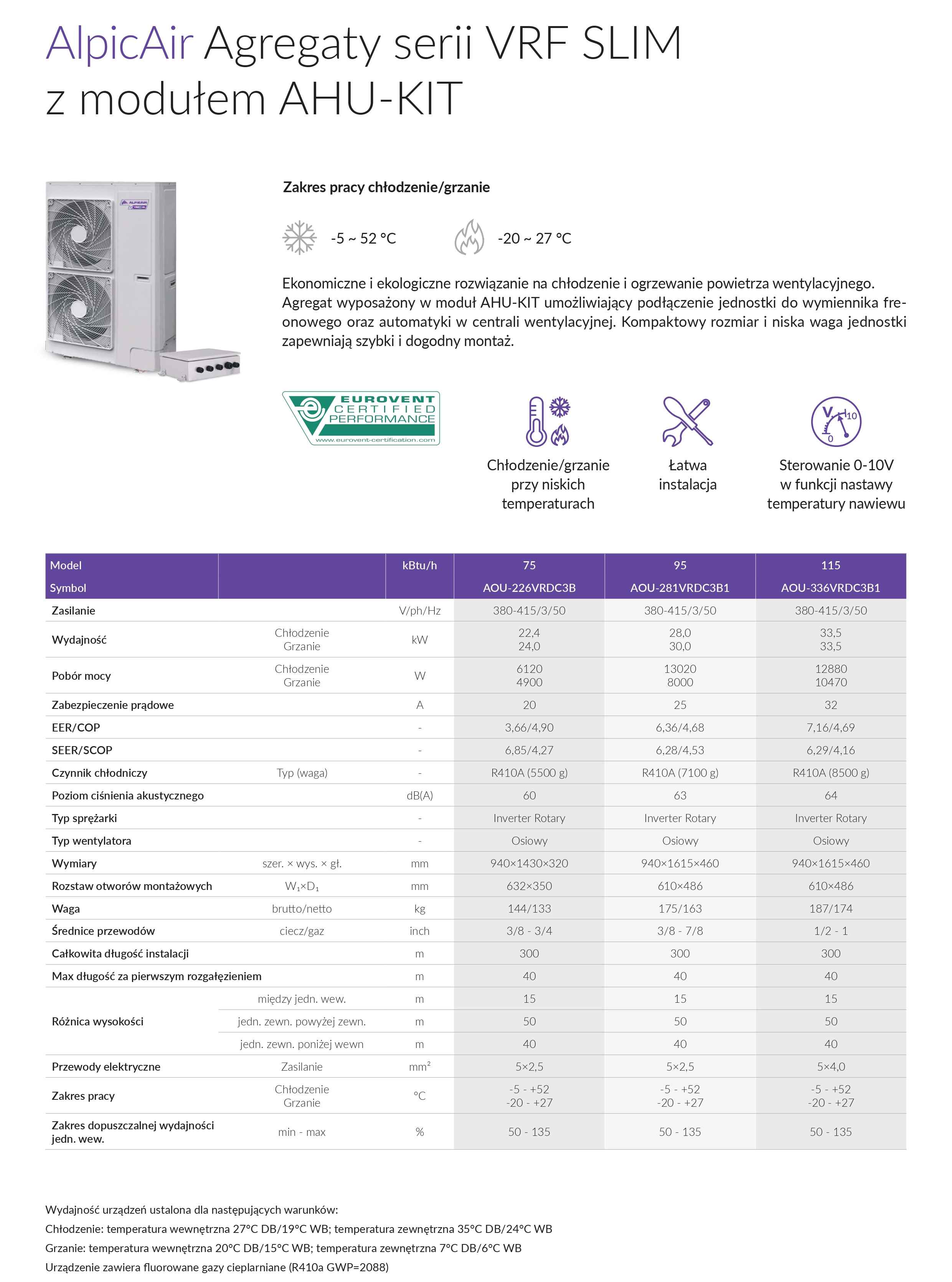 - ALPICAIR Agregaty serii VRF SLIM z modułem AHU-KIT